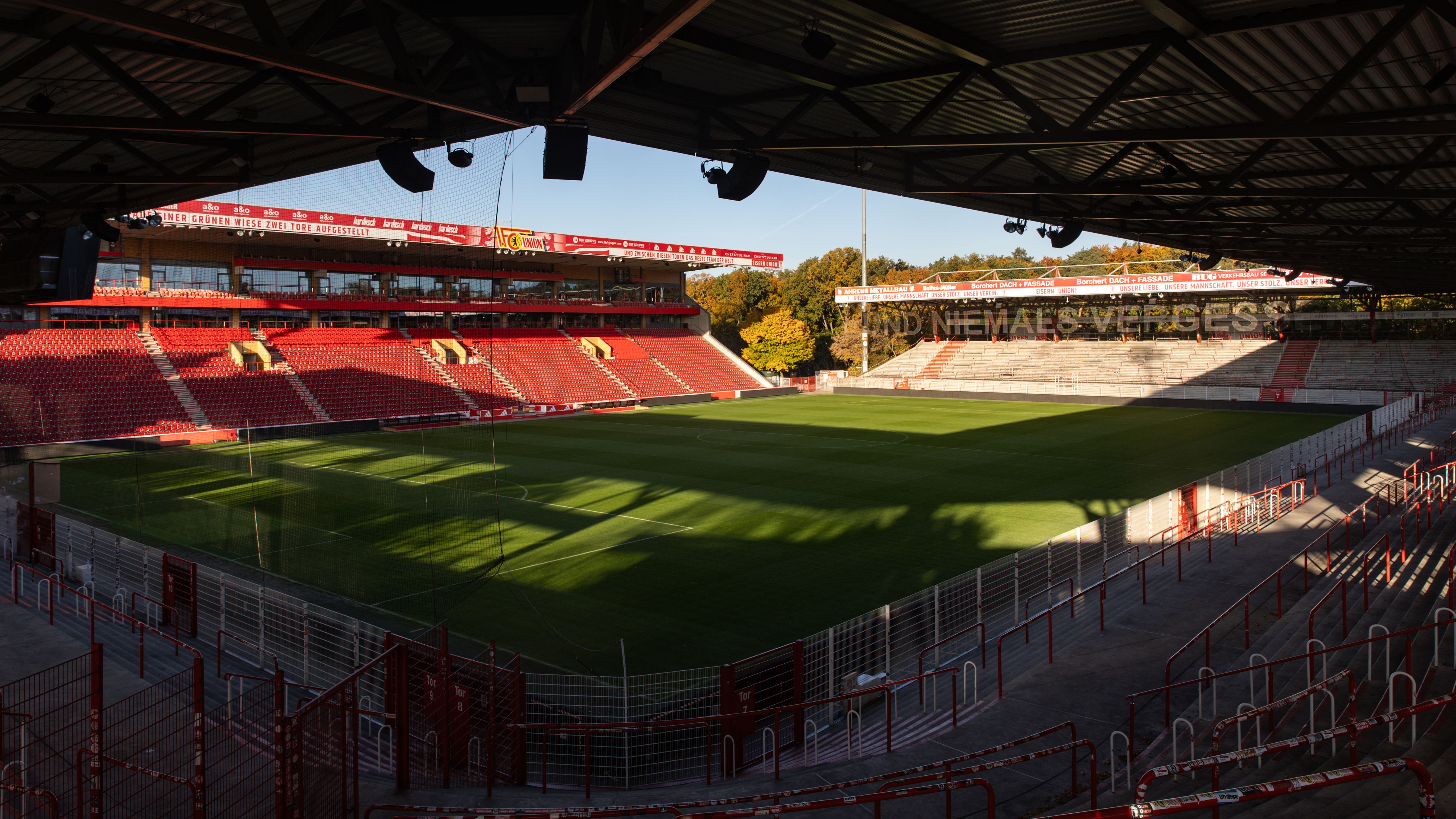 Im Stadion An der Alten Försterei gibt es mehr als 8.000 m² für Veranstaltungen. Hier kann man ein Fußballturnier machen, ein Rockkonzert, einen Boxkampf, eine Modenschau oder ein Sommerfest. Unser Stadion hat Platz für bis zu 28.000 Gäste. Man kann fast jedes Event machen. Ohne Innenraum passen auf den Stehplatz-Tribünen und den Sitzen von der Haupttribüne 22.012 Personen.